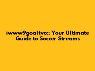 Iwww9goaltvcc: Your Ultimate Guide To Soccer Streams