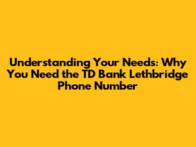 Understanding Your Needs: Why You Need the TD Bank Lethbridge Phone Number
